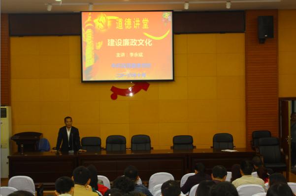 该校李永斌老师作了题为《建设廉政文化》的讲座,从“什么是廉政文化;为什么要建设廉政文化;怎样建设廉政文化”三个方面进行讲解,并指出,要把廉政建设与学校教育相结合,在青少年身上播种“廉”的种子和“洁”的基因,把廉政建设与社会教育相结合,在全社会形成“以廉政为荣,以腐败为耻”的舆论氛围。