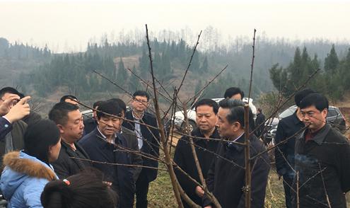 文章来源:花垣县农业局 作者:吴安用 时间:2017-02-16 15:45:17 2月15日上午,副省长戴道晋、省农委副主任余雄一行在湘西州花垣县麻栗场镇黄桃种植基地实地调研。