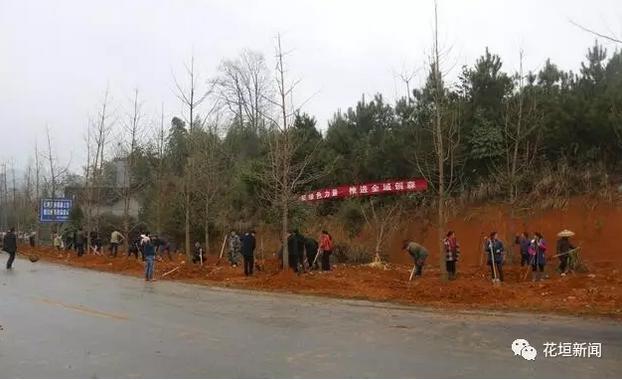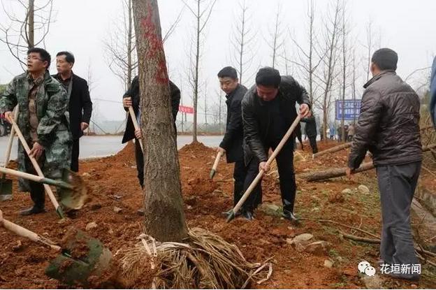 当天上午,尽管天空飘着蒙蒙细雨,但在花民公路两旁的植树现场人头攒动,一派热火朝天的劳动场面。在县林业局技术人员的指导下,大家七、八人一组,分工合作,有的挖坑、有的扶苗、有的覆土,忙得不亦乐乎。在大家的共同努力下,共栽植银杏、红叶石楠、桂花、樱花、栾树、紫荆等行道绿化观赏树种苗木200余株。放眼望去,高大挺拔的银杏、红绿相间的红叶石楠、枝叶繁茂的桂花沿着公路两旁整齐列队,焕发出勃勃生机。