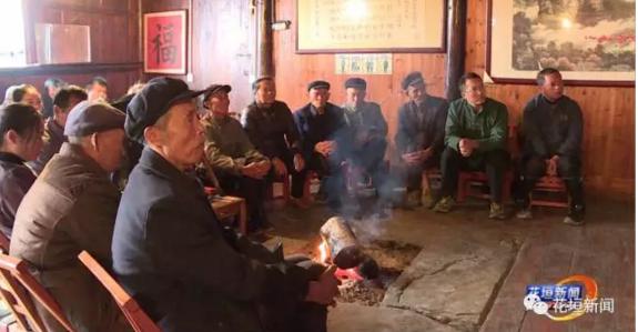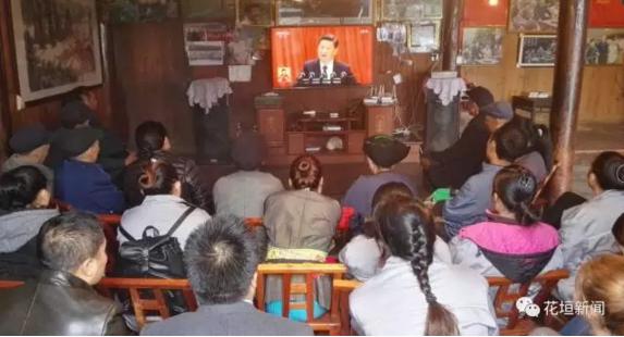 在十八洞村施成富老人家中,村干部及村民们围坐在火塘边,集中收看,大家认真聆听报告,详细记录。大家热议报告,畅谈发展。