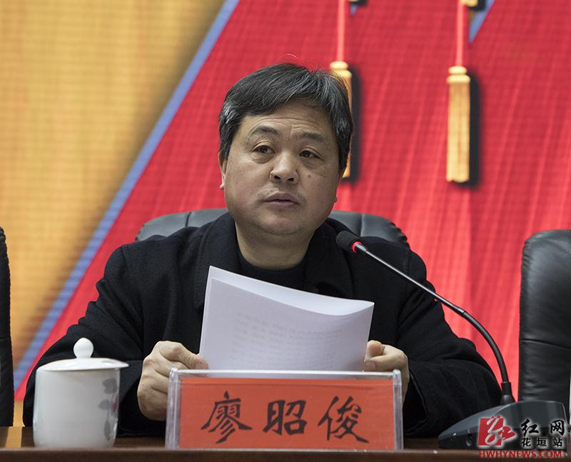 县委常委、县人民政府常务副县长廖昭俊宣读了《关于2018年度全县脱贫攻坚工作考核评估情况的通报》。