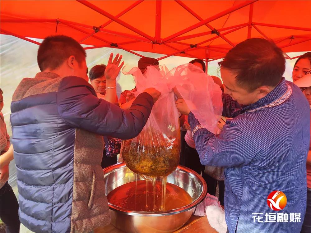排楼村蜂场负责人石吉斌正在取蜂蜜