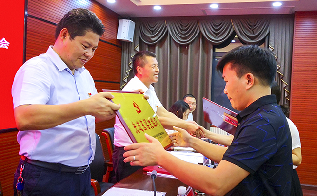 县委常委、县委组织部部长鲁民明为先进集体颁奖