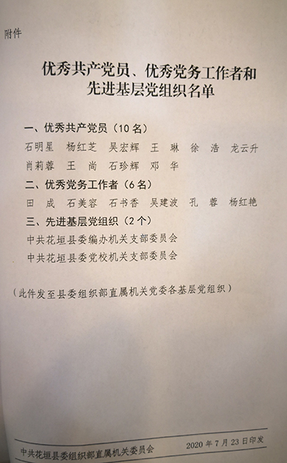 换届选举结束后,新一届直属机关党委接着对优秀个人和先进集体进行表彰,激励全体党员干部以先进为榜样,不忘初心、牢记使命,坚守信仰、担当作为,为推进“四个花垣”建设作出新贡献。