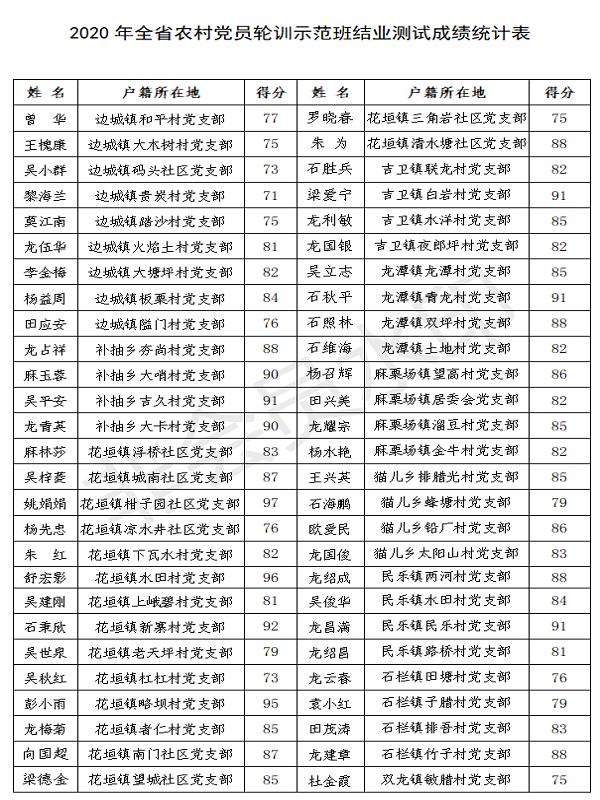 2020年全省农村党员轮训示范班结业测试成绩出来啦!