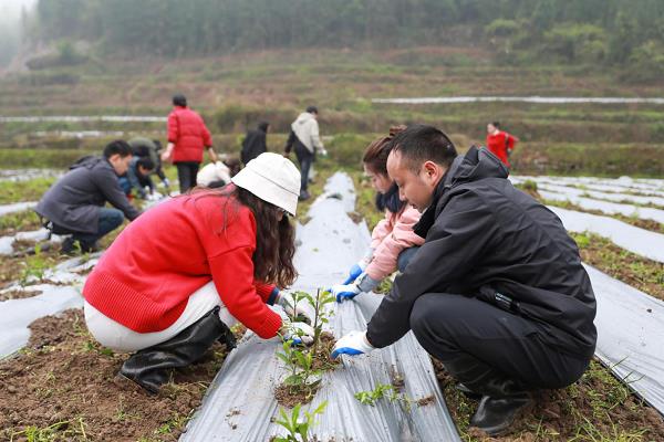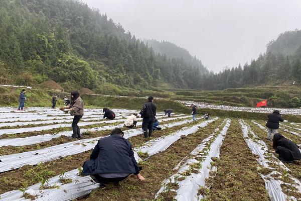 “种茶时要把握间距,深摘秧苗压紧土,要根深才能叶茂,我们要把这一亩三分地的头开好了。”茶叶种植前,分管产业的副镇长彭涛先给党员们细致培训种茶的要求。随后,大家就开始忙活起来,从挖坑、分苗、填土、压土,每个步骤都分工明确、有条不稳。数小时后,田间上3500余柱茶苗昂然挺立。