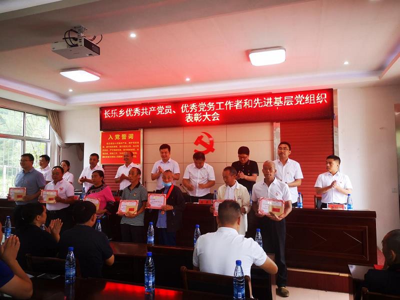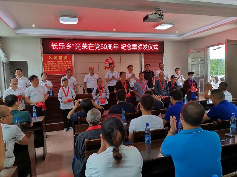 文章来源: 作者:高姣 唐慧敏 时间:2021-07-09 18:01:266月30日上午,长乐乡优秀共产党员、优秀党务工作者、先进基层党组织表彰大会暨“光荣在党50年”纪念章颁发仪式在国际歌中胜利闭幕。