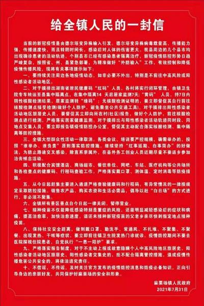 目前,麻栗场镇各村(社区)对所有近期返乡人员建档立卡,实行村干部负责制,检查其健康码、行程码、核酸检测结果,每日对返乡人员进行体温测量,情况跟踪。同时,麻栗场镇在全镇范围内发放防疫知识宣传单、致全镇人民的一封信、致餐饮行业疫情防控告知书等,提高我镇辖区群众自我防护意识和能力,引导群众积极参与疫情防控,筑牢基层防控屏障。