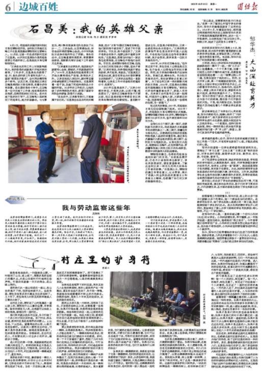 2015年石昌美退休了。“父亲小时候对我说,不准我从政,以前不懂,现在明白了。”虽然石玉峰教导孩子不要从政,但石昌美却能时常感受到父亲的革命精神和政治敏锐性。直到新中国成立后,石昌美才彻底明白,父亲一生都在用生命为党奋斗。“父亲的很多故事细节我也是后来听村里人谈起的,只有在他们谈起这些传奇故事的时候,我才会想到,原来我是一位抗日英雄的后代。”