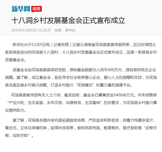 花垣县十八洞乡村发展基金会成立 获捐5465.85万元