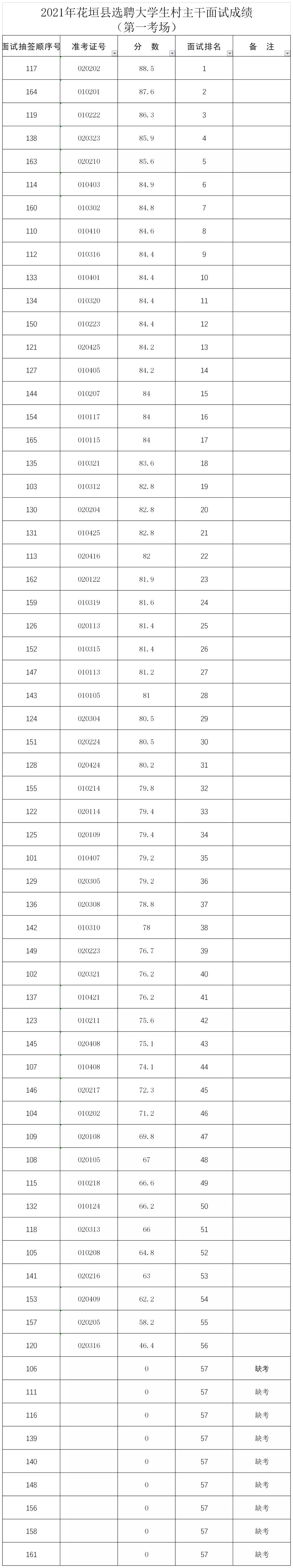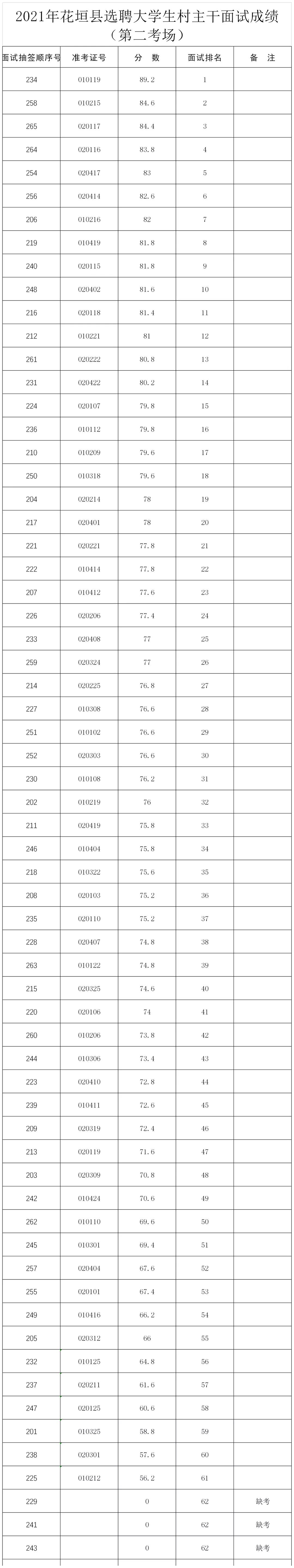 2.2021年花垣县选聘大学生村主干面试成绩(第二考场)
