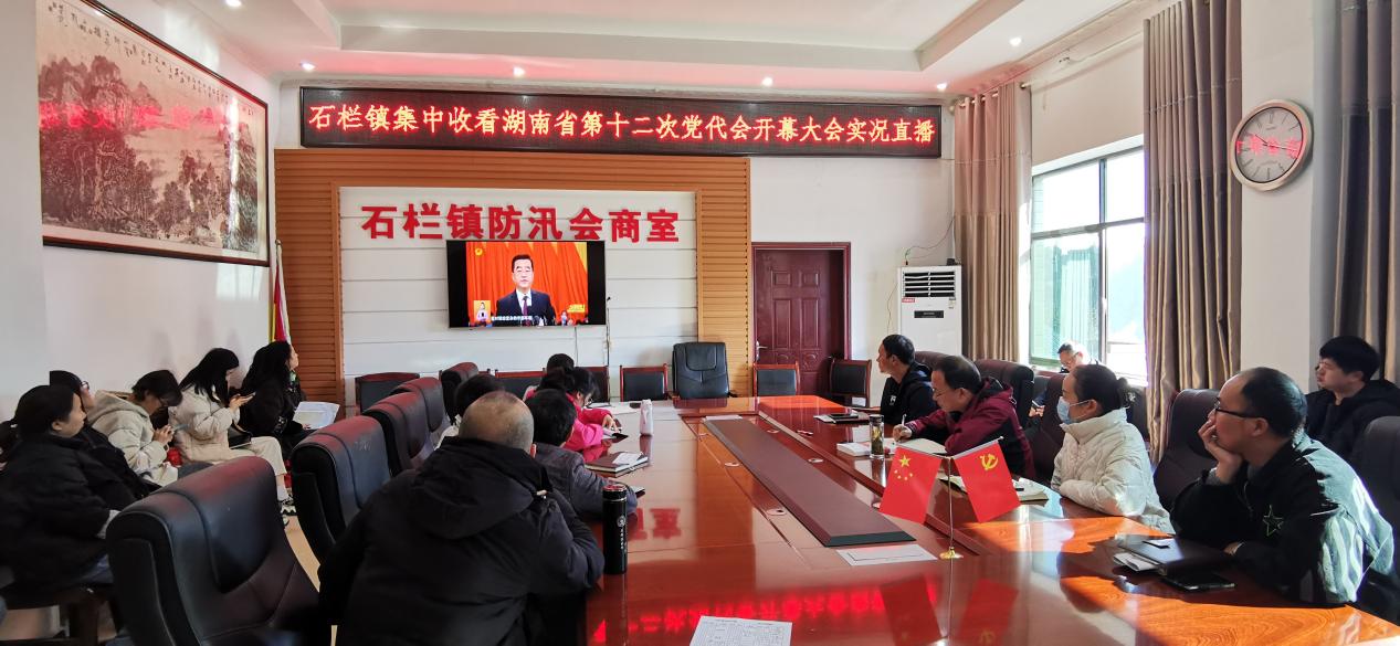 石栏镇组织集中收看省第十二次党代会开幕式直播