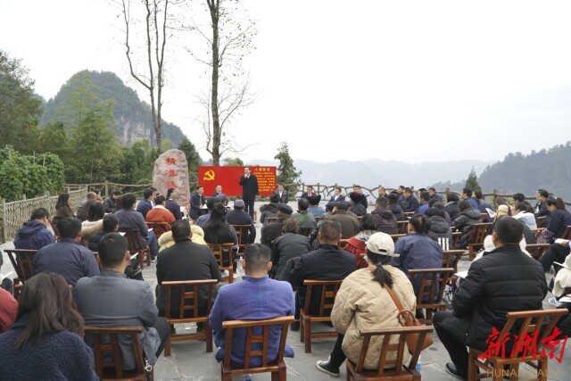 11月29日,省党代会闭幕第二天,省党代表、湘西州委书记虢正贵,省党代表,湘西州委副书记、花垣县委书记廖良辉,省党代表,花垣县双龙镇副镇长、十八洞村党支部书记施金通,就在十八洞村通过“院坝会”的形式,将省党代会精神向村民和各级党员干部代表进行传达。