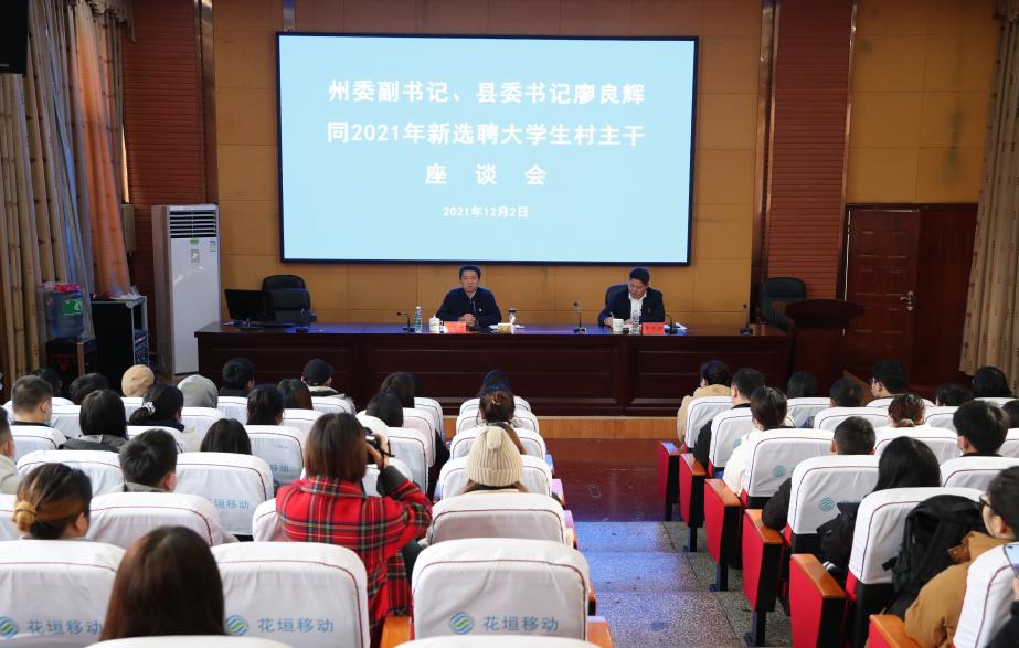 12月2日,花垣县召开大学生村主干座谈会,湘西州委副书记、花垣县委书记廖良辉出席并讲话。他强调,要以习近平新时代中国特色社会主义思想和关于“三农”工作的重要论述为指引,躬身基层,担当作为,积极为建设花园式现代化新花垣贡献力量。