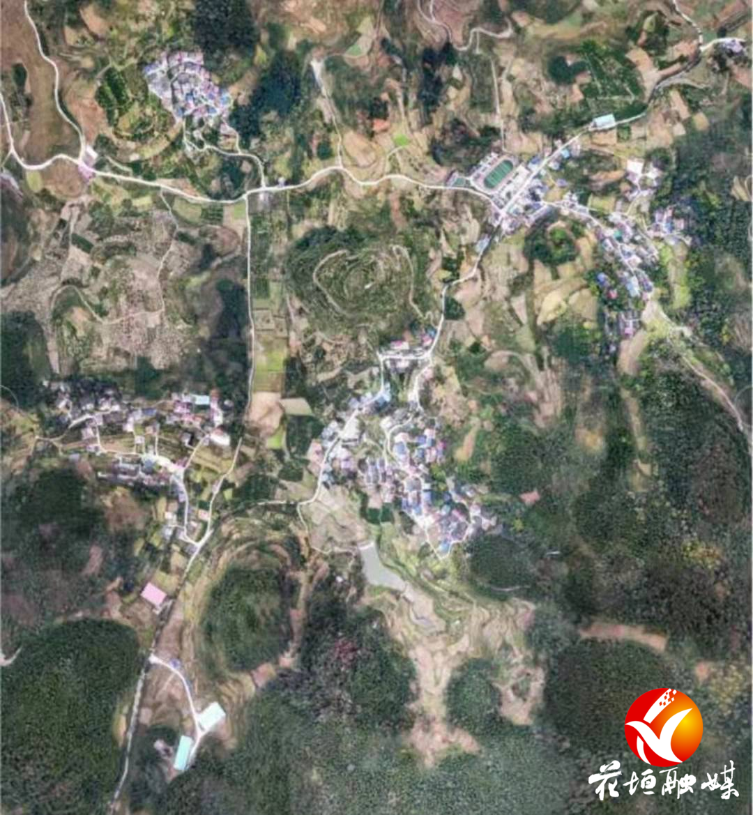 大塘坪村全境航拍俯视图。