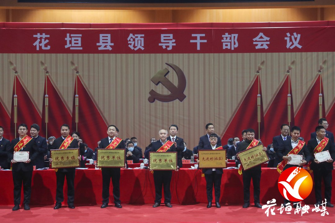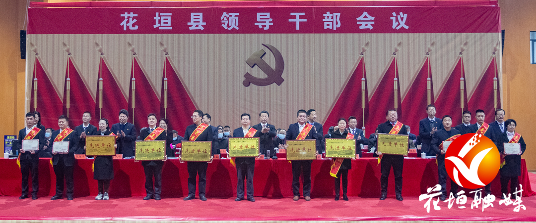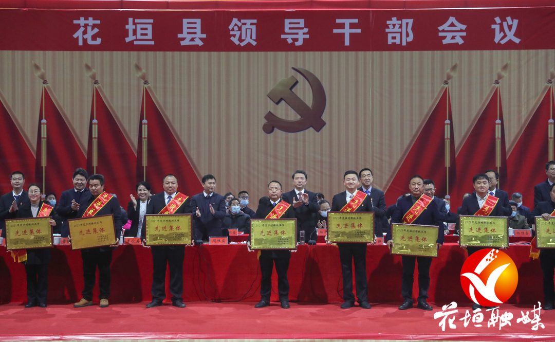会议现场表彰了2021年度全县重点项目建设工作、招商引资工作、推进放管服改革和优化营商环境工作、城乡人居环境综合整治工作、文明创建工作、全面深化改革工作、网格化社会服务管理工作、平安建设、维护社会稳定、反邪教、国家安全人民防线工作、扫黑除恶斗争、安全生产和消防工作、信访工作、全县殡葬改革工作先进集体和先进个人,并为他们颁发荣誉奖牌和证书。
