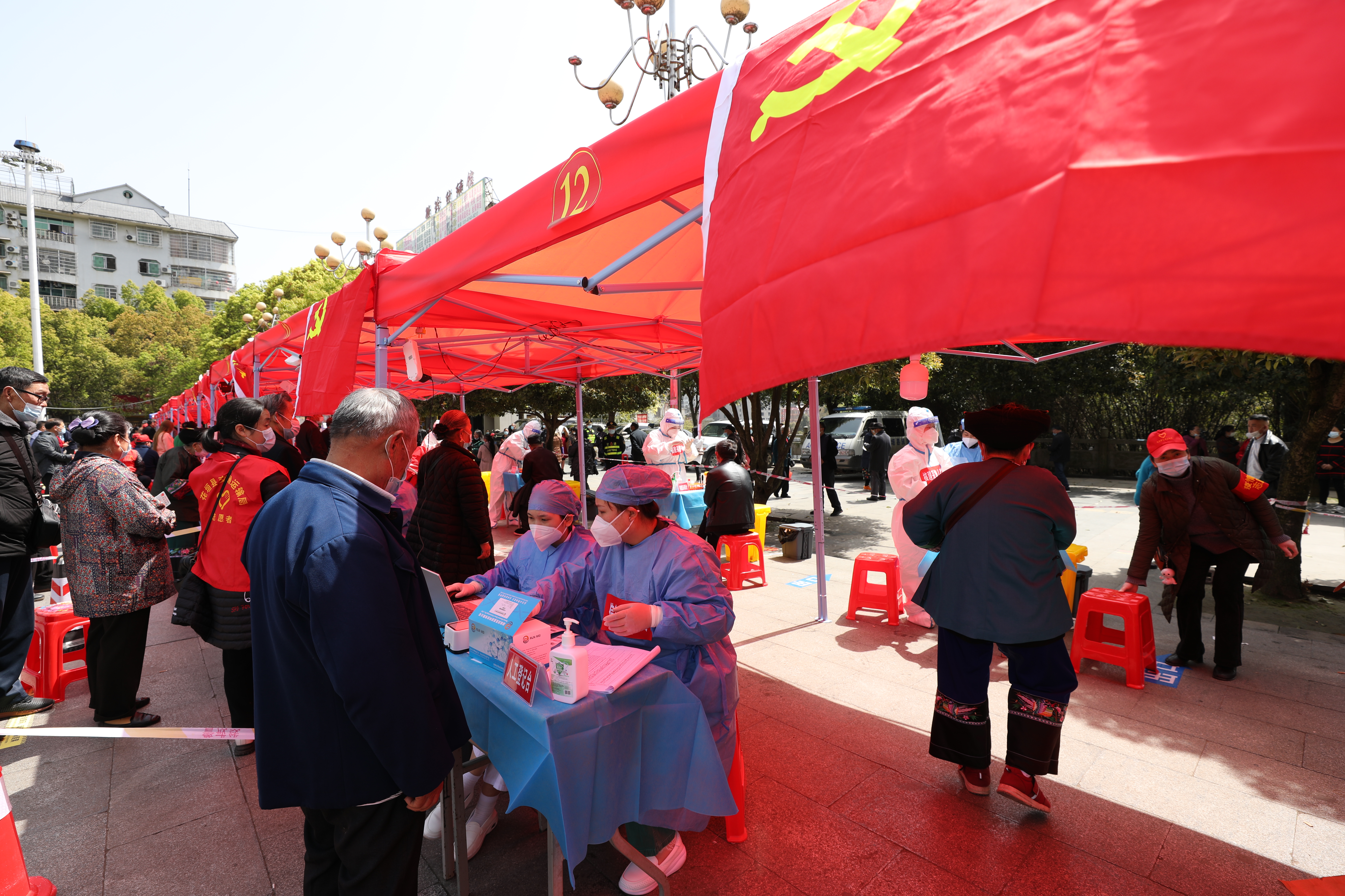 在工作人员指挥下,群众有序进入各演练场地,党员志愿者在各自区域组织群众扫场所码、测体温、疏导秩序等,现场还为“老弱病残幼孕”等特殊人群开辟了“绿色通道”,在志愿者的帮助下快速完成采样。