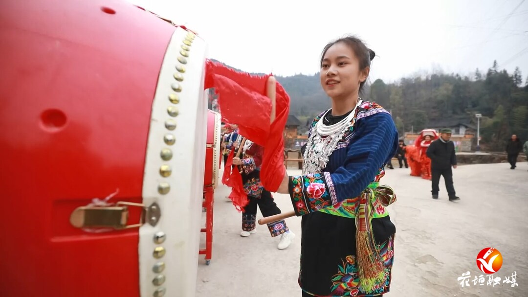 春节期间,那光村鼓声阵阵、年味浓浓。凉亭露台前,身着苗服的阿妹挥动着红绸鼓棒,幸福洋溢在乡亲们灿烂的笑容里。梁玉是村里的大学生,放假回村后,她就开始带着村里的年轻人一起学习苗鼓。“逢年过节每家每户有喜事的时候,我们会打苗鼓,热闹起来。感觉今年村里的变化特别大,驻村工作队带着村民们一起修砌这些围墙,有的村民还主动让地,我们的生活越来越美好了。”梁玉一边打着苗鼓一边开心地说道。