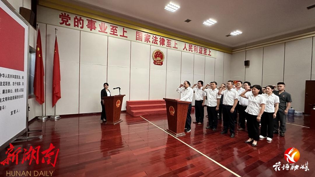 龙仕英为新任命人员颁发任命书,新任命人员作履职承诺,并进行宪法宣誓。