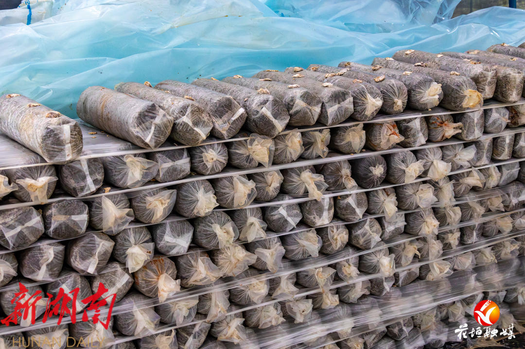 “之前我们都是冬天接种(菌种),因为冬天温度低,成活率才高。长期来,基地都面临着夏天无法制作菌种的难题。后来,我们引进了花垣县金来农业有限责任公司的技术,实现了夏天也可以接种(菌种)。这些都是我们夏天接种的成果,这个菌棒可以达到1.5到2斤的出菇率。”长潭村党支部书记、村委会主任吴新杏拿起菌棒向记者介绍起夏天制作的菌种,这批菌种要在棚里存放90天左右,待菌丝布满菌包,就可以上架出菇了。