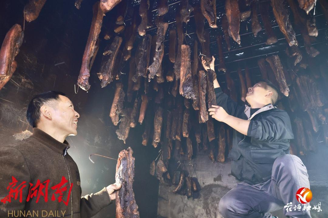 文章来源:花垣县融媒体中心 作者:田仁峰 林彬 时间:2024-01-29 15:40:49杀年猪、熏腊肉,这是湘西人的年味。花垣县民乐镇易地搬迁安置区的吴清泉父子通过养猪、熏制腊肉,年产值达到30余万元,腊味销往全国各地,真正实现搬得出、稳得住、能致富。