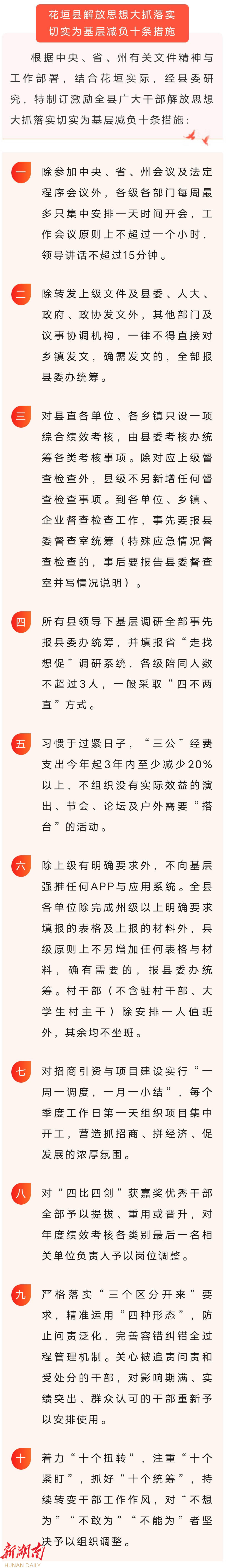 花垣县解放思想大抓落实切实为基层减负十条措施