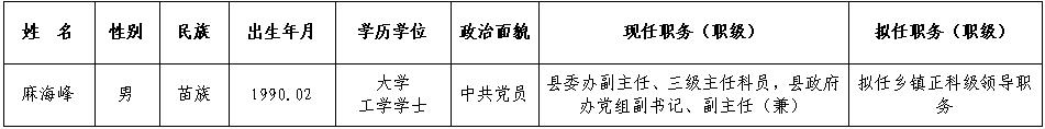 文章来源: 作者:中共花垣县委组织部 时间:2024-11-25 22:08:05为加强对干部选拔任用工作的监督,提高识别和任用干部的准确度,现对县委常委会议研究决定的1名拟任职人选予以任前公示。